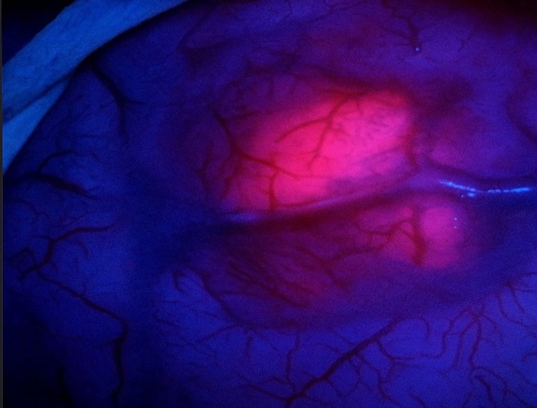 A targeted dye that illuminates tumor cells under blue light, helping distinguish tumor from normal brain tissue.